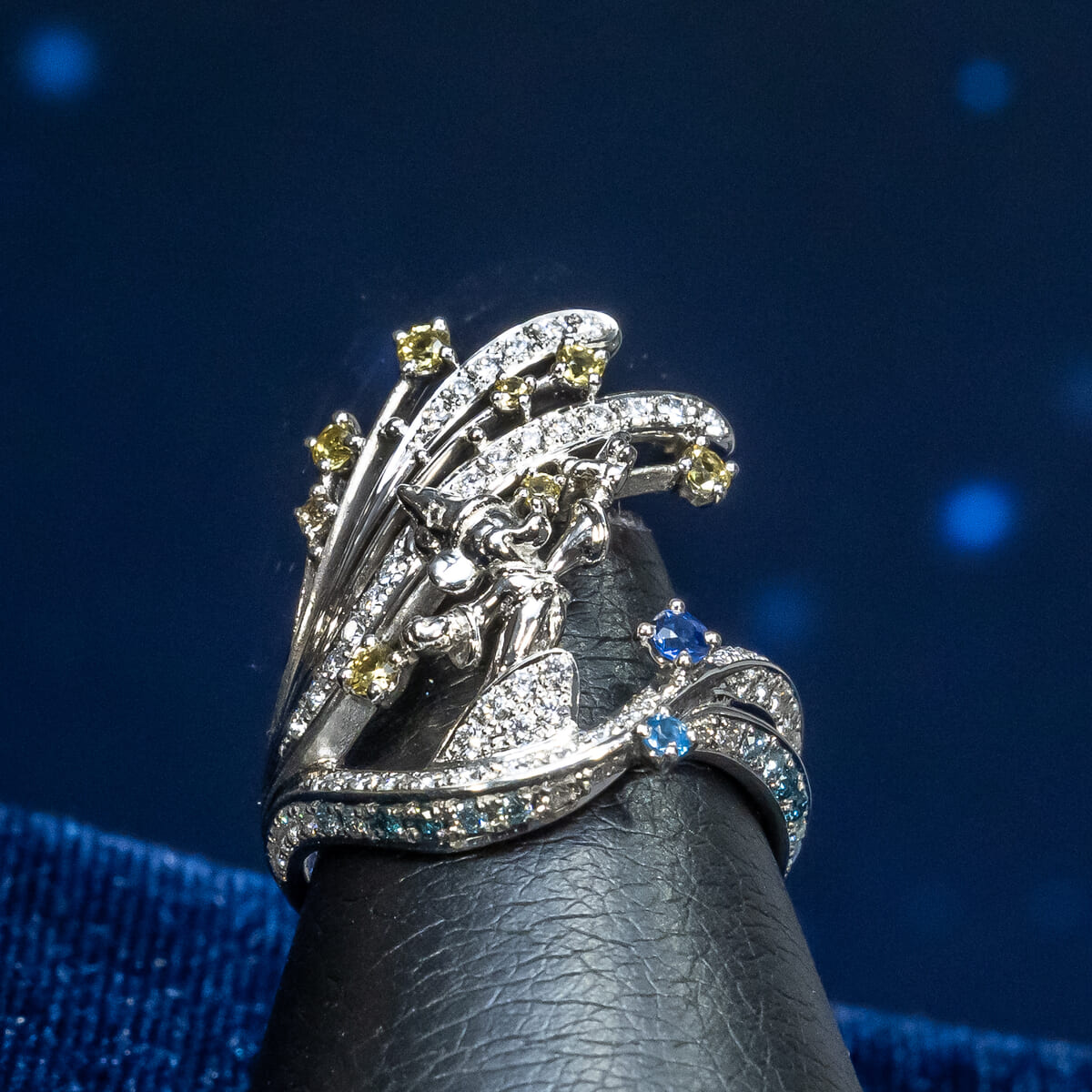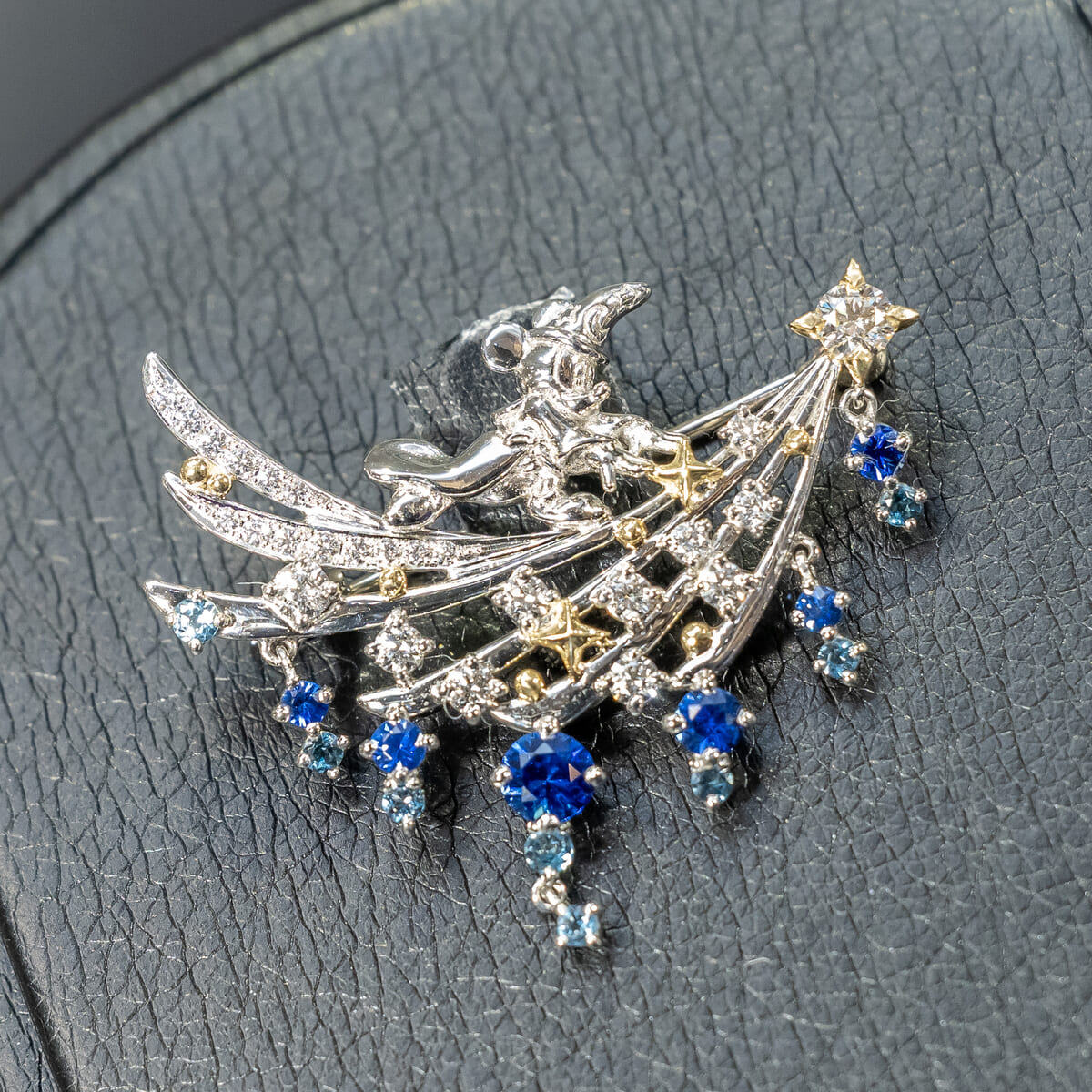 「ミッキーマウス」が夢の中で一人前の魔法使いになる象徴的なシーンをモチーフにした、プレミアムジュエリーです。