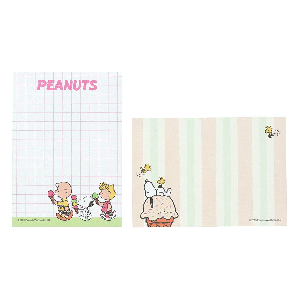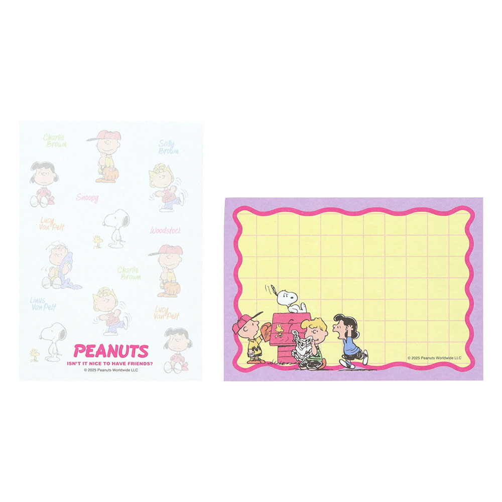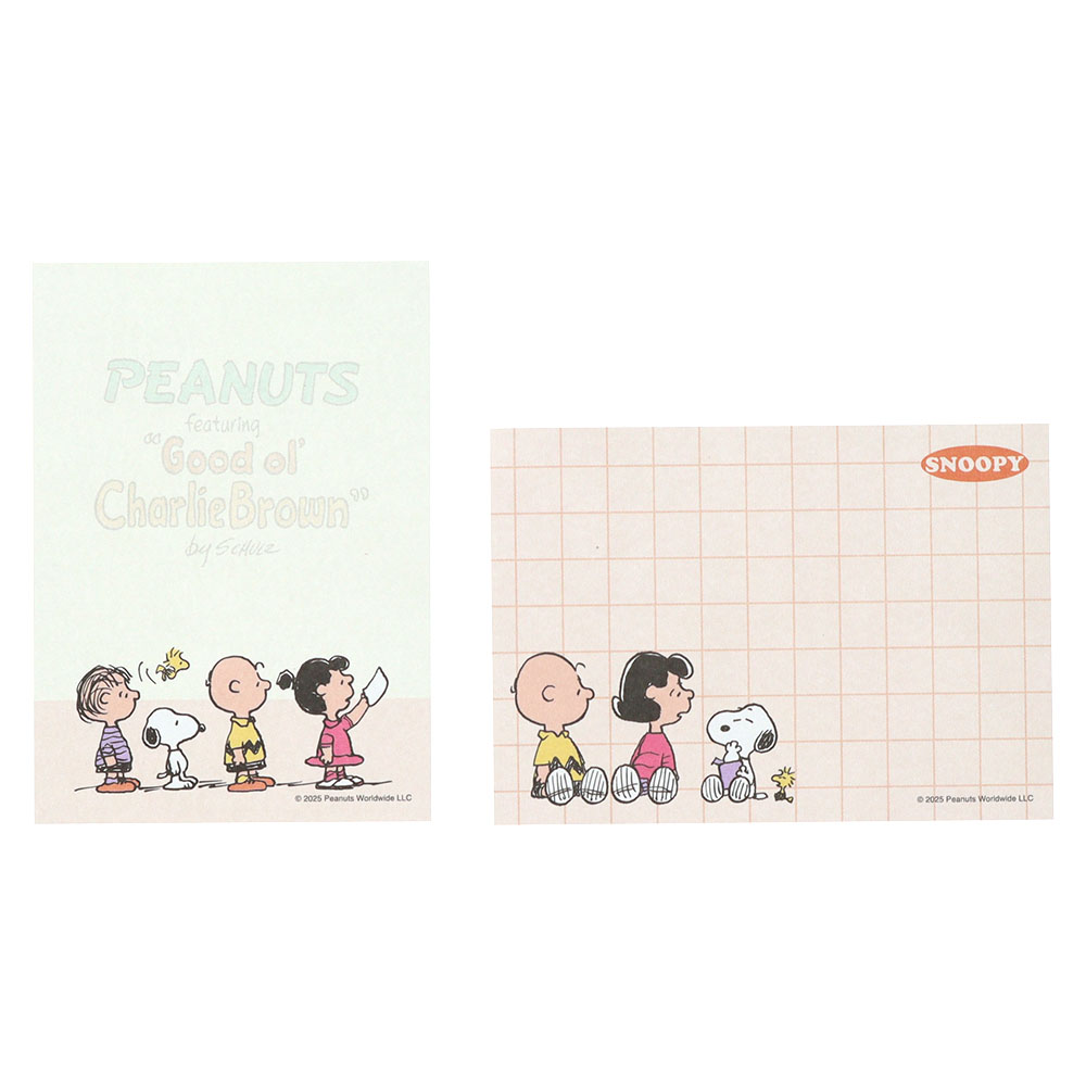 「ライナス」や「ルーシー」も登場する、かわいいメモ2種のセットです。