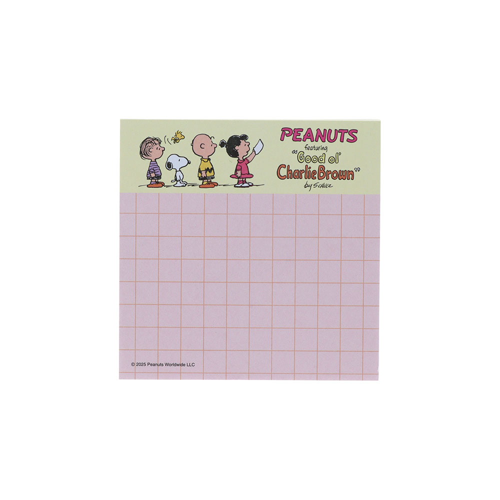 「ジョー・クール」や「チャーリー・ブラウン」たちを描いたメモが全5柄、各16枚 ずつセットされています。