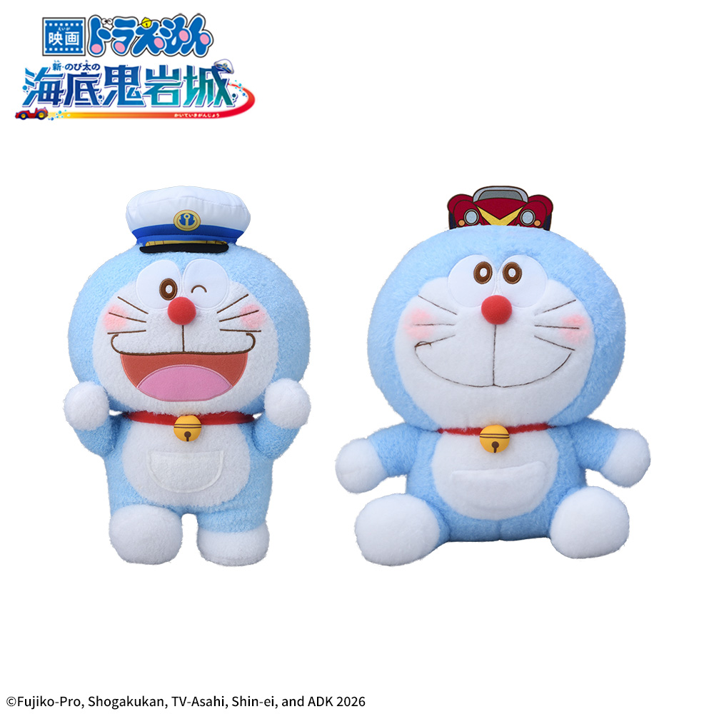 『映画ドラえもん 新・のび太の海底鬼岩城』から「ドラえもん」の“赤いほっぺ”ぬいぐるみが大きなサイズで登場。