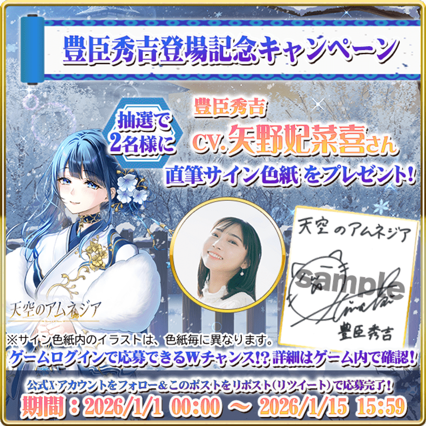 「天空のアムネジア」公式X(旧Twitter)とゲーム内の両方で開催されるプレゼントキャンペーンです。