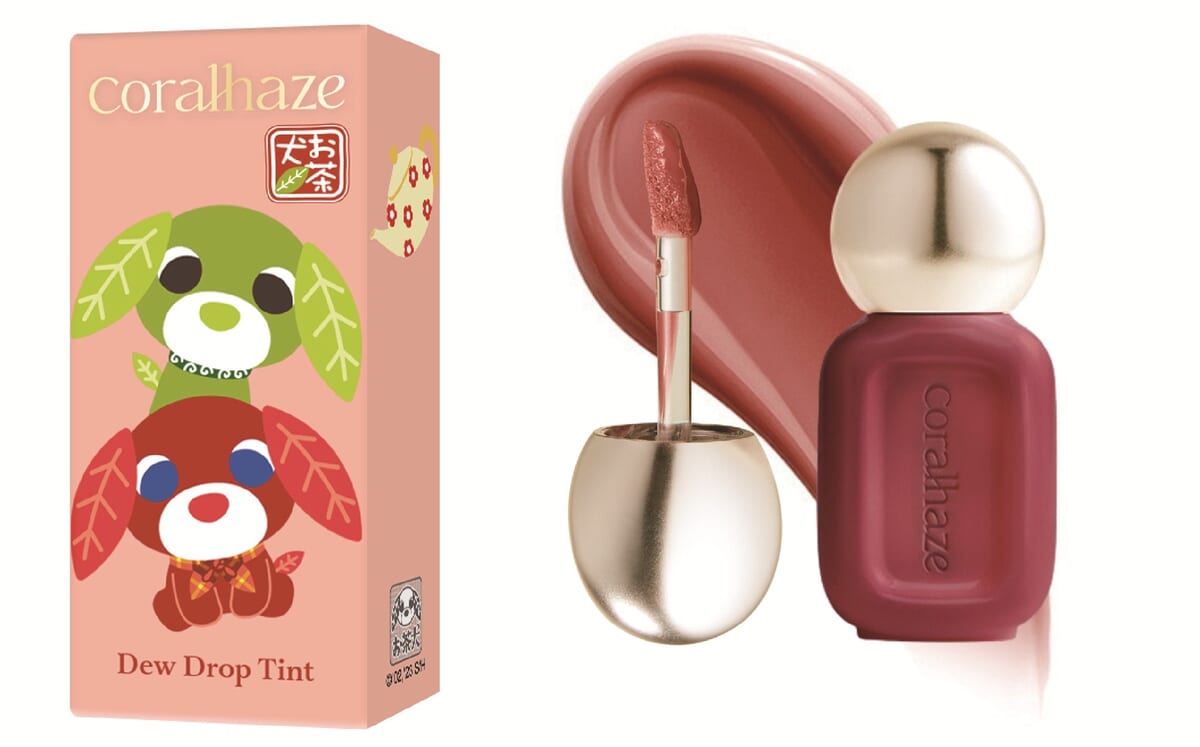 セガ フェイブから「お茶犬」と、韓国コスメ「Coralhaze(コーラルヘイズ)」がコラボした「デュードロップティント」が登場。