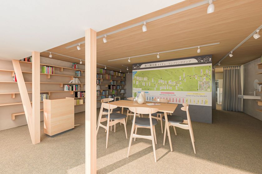 ネイチャーガイドツアーの発着拠点としての機能に加え、自然環境に関する書籍を取り揃えた「ミニライブラリー」を併設し、地域住民や旅行者が気軽に立ち寄れるオープンスペースとして運用されます。