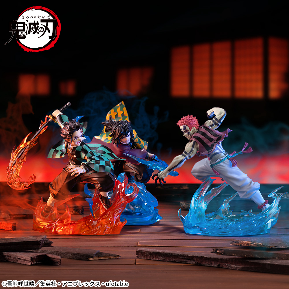 「竈門炭治郎」「冨岡義勇」「猗窩座」の3人による、「無限城編」の戦闘シーンを再現できるフィギュアです。