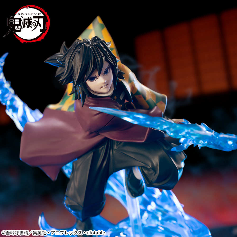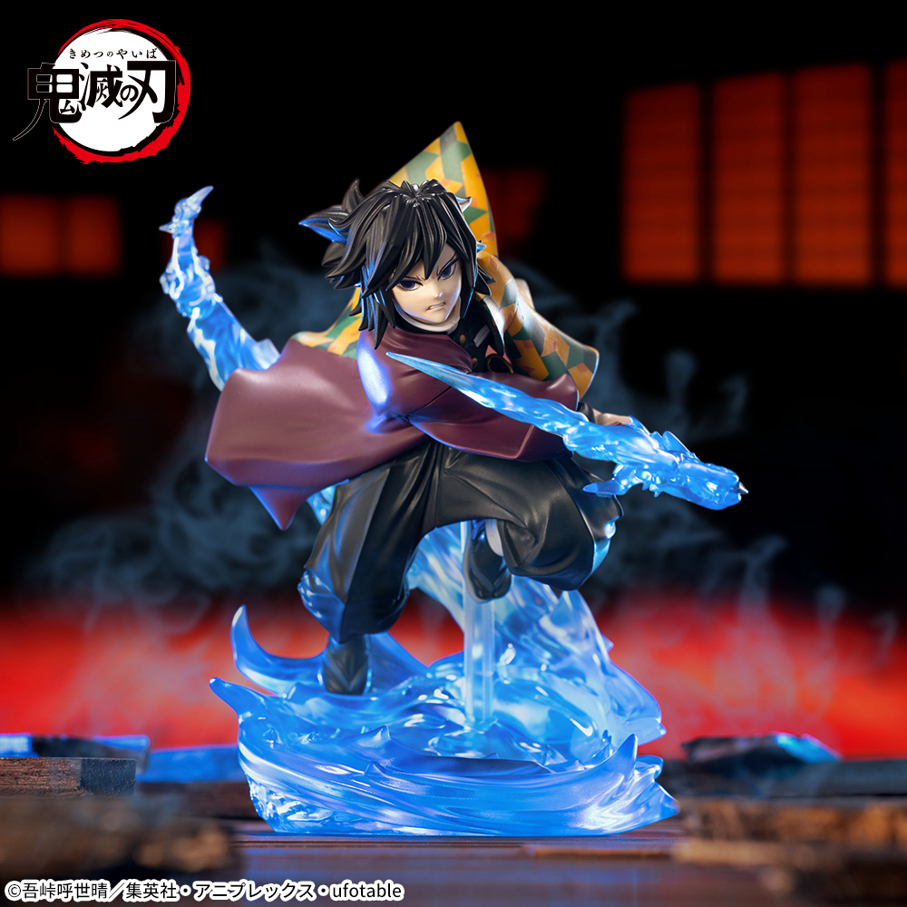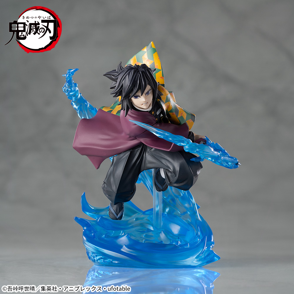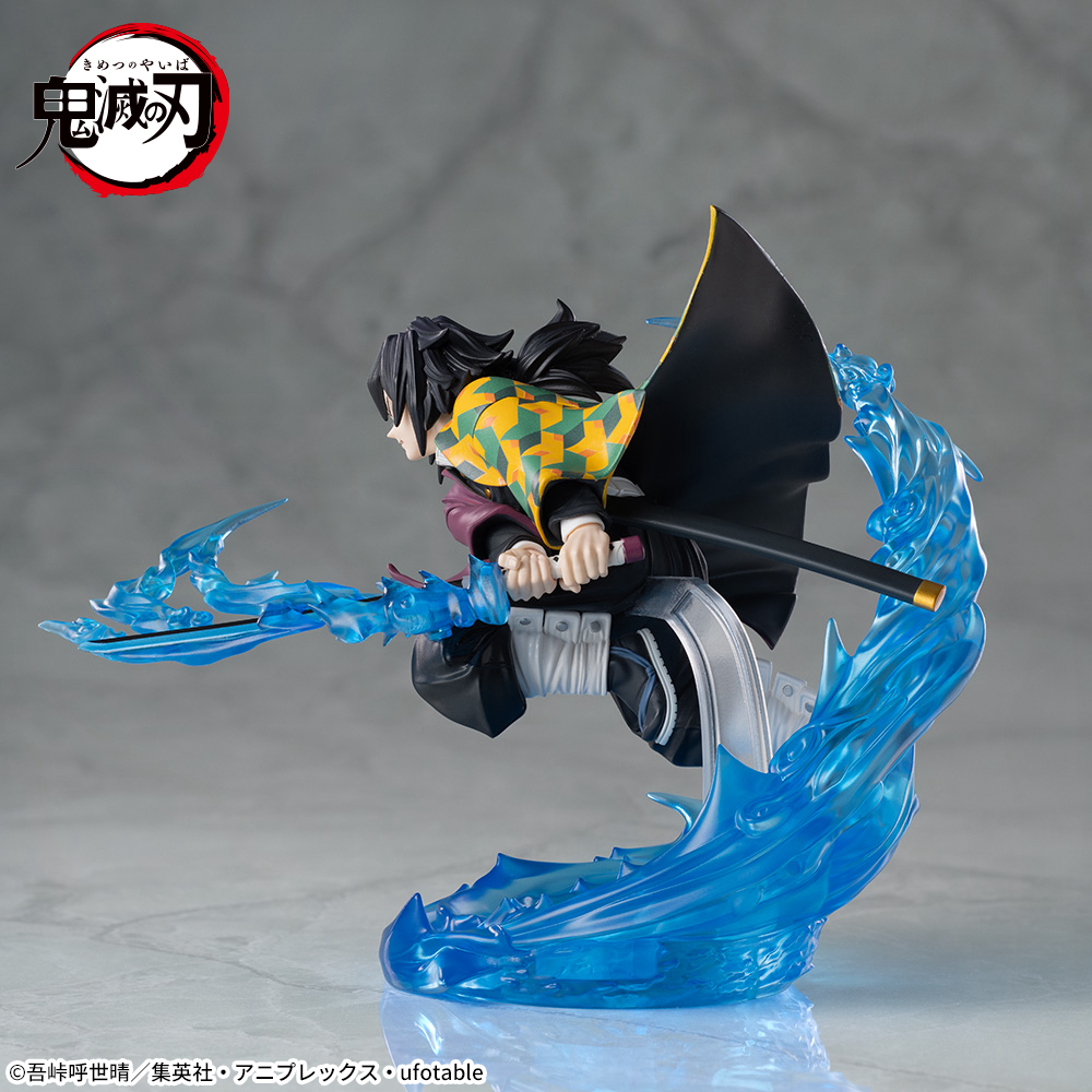 鋭いまなざしで刀を振るう「冨岡義勇」が、水のエフェクトとともに立体化されています。