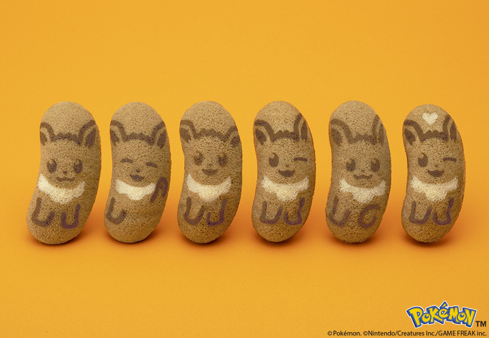 愛くるしいイーブイ模様で焼きあげた「イーブイ東京ばな奈」は、幸せいっぱいの“もふもふ”をテーマにした“キャラメルモフアート味”。