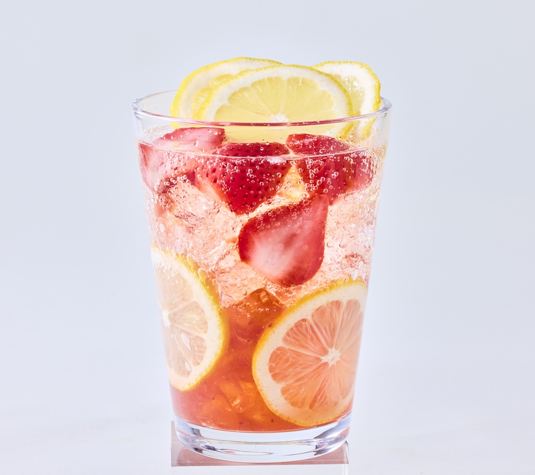 いちごのフレッシュさと、レモンのキリッとした酸味が際立つ「あまおうクラフトレモネードソーダ (ICE)」