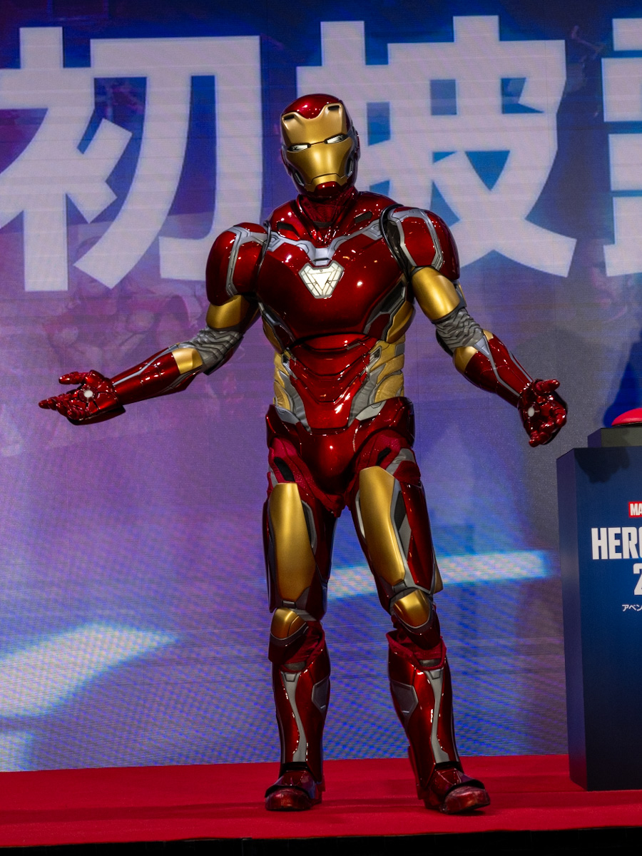 ステージ下からアイアンマンが登場すると、会場からは大きな歓声が。