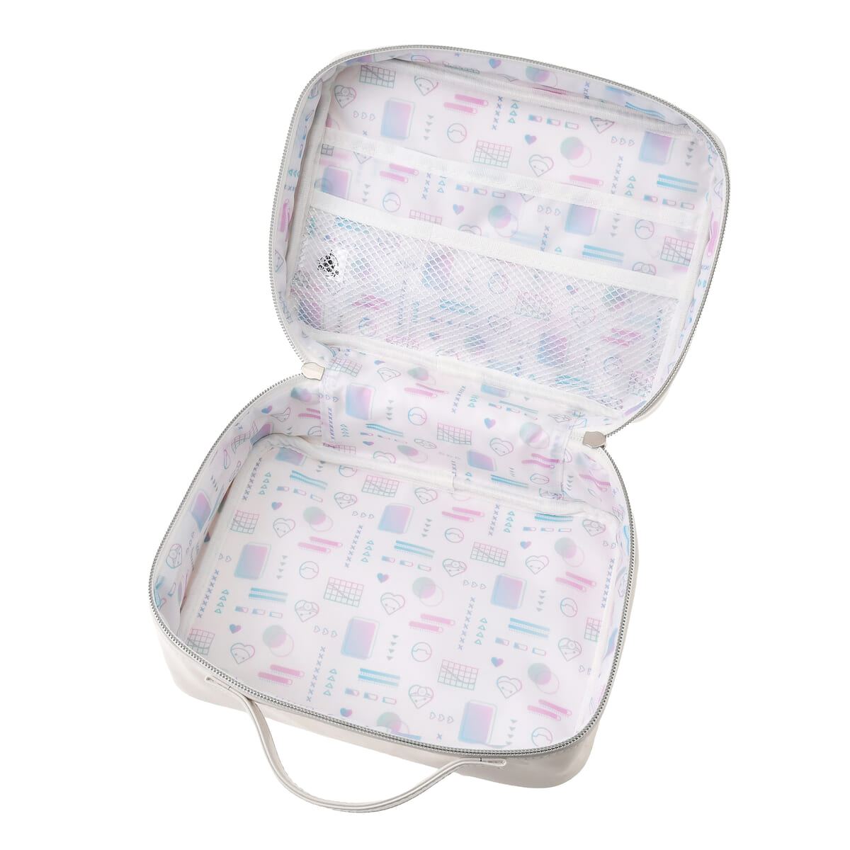 ファスナーを開けた内側はやわらかなグラデーションカラーの総柄になっています。
