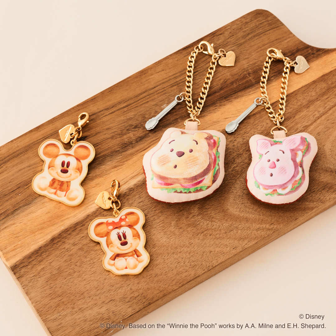 「ミッキーマウス」と「ミニーマウス」をデザインしたチャーム、「くまのプーさん」と「ピグレット」デザインのバッグチャームなど全10種類がラインナップされています☆