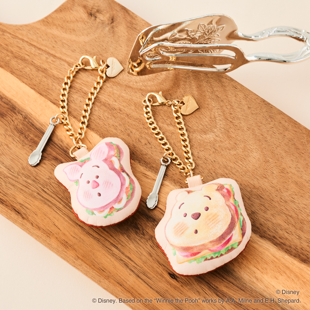 ディズニーキャラクター「くまのプーさん」と「ピグレット」のサンドウィッチをモチーフにしたバッグチャーム。