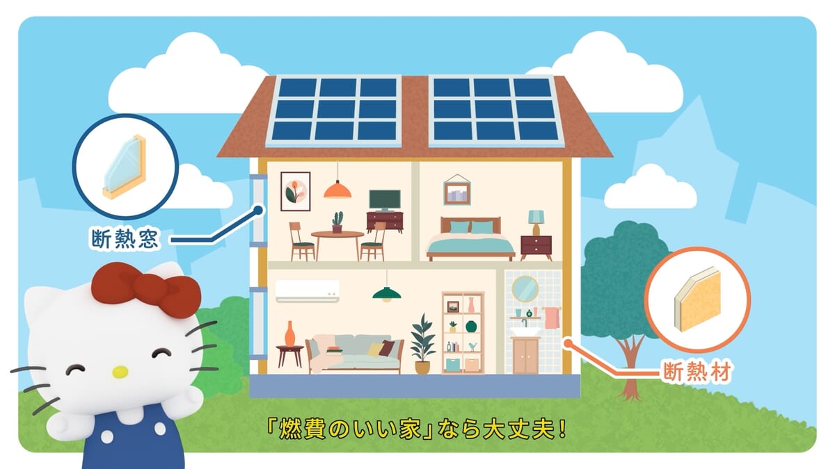 東京都がサンリオの「ハローキティ」とコラボした、断熱性能の高い住宅が持つメリットを紹介する動画第2弾を配信。