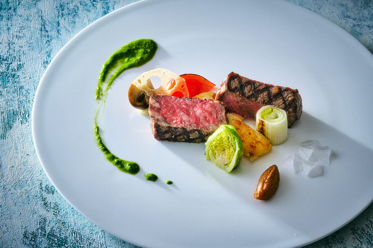「鉄板焼 羽衣」にて提供中の「総料理長 大塚康成が贈るフレンチ鉄板焼~Splendeur~」にも、期間限定で五島和牛を使ったメニューが登場。