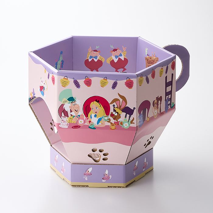 ティーパーティーのシーンを彷彿させるカラーリングと、人気の猫のキャラクター「チェシャ猫」がどこかに隠れているデザインです!