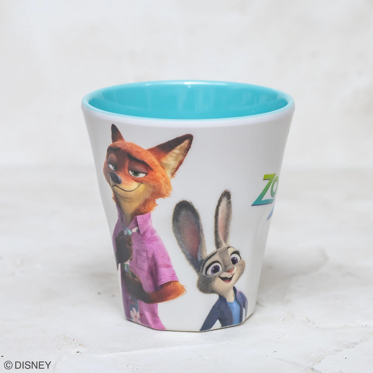 背中合わせになった「ジュディ・ホップス」と「ニック・ワイルド」をデザインしたアクリル樹脂製のコップ。