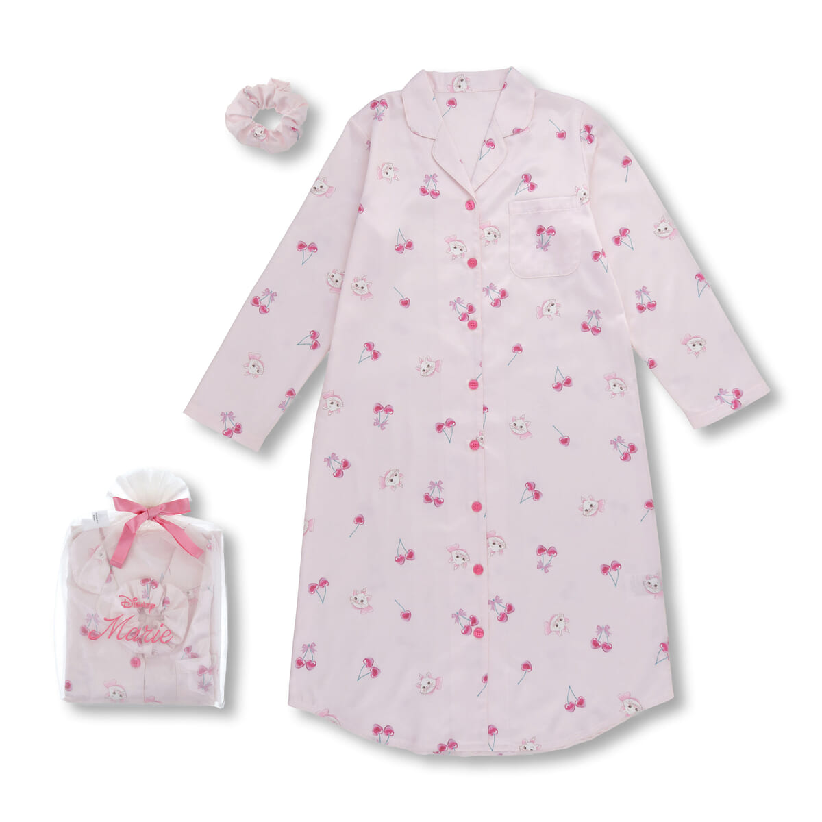 「マリー」とさくらんぼを組み合わせた総柄デザインを使用した、ワンピースタイプのナイトウェア。