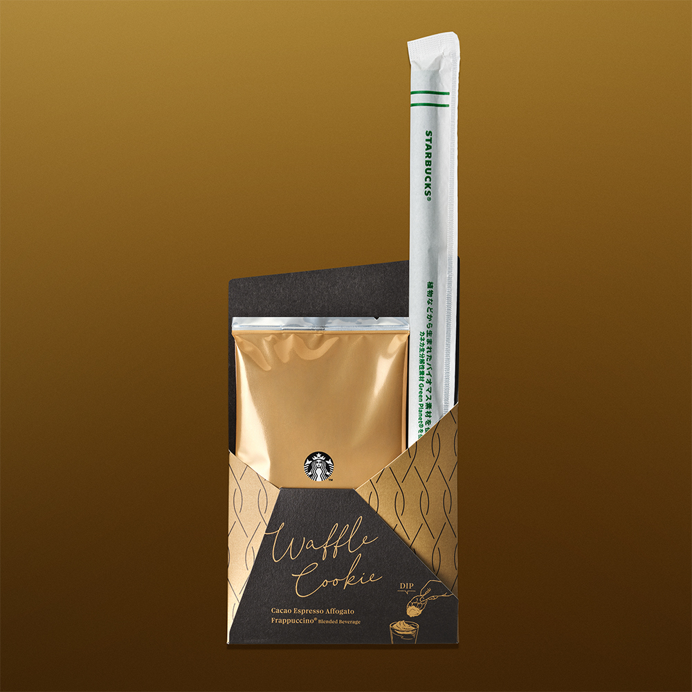 “極上のアフォガートフラペチーノ体験”を完成させるのは、別添えのワッフルクッキーを“ディップして味わう”新しい体験。