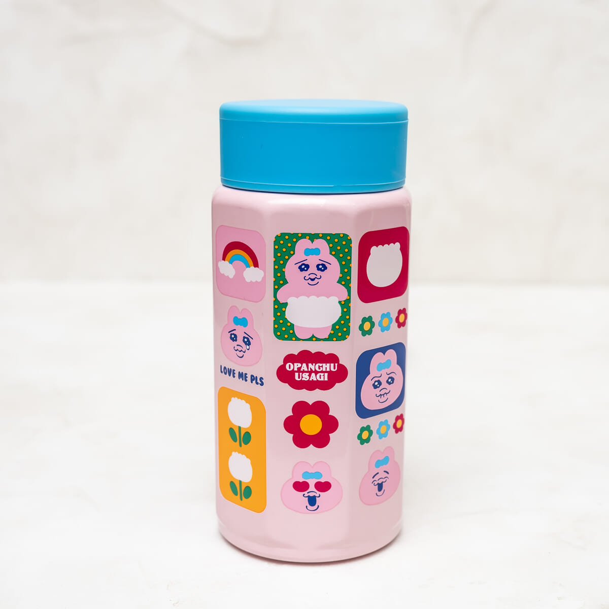 「おぱんちゅうさぎ」のユニークな表情と鮮やかなカラーリングが楽しい、ドーム型お弁当箱や八角形ボトルなど、機能性も抜群のラインナップ。