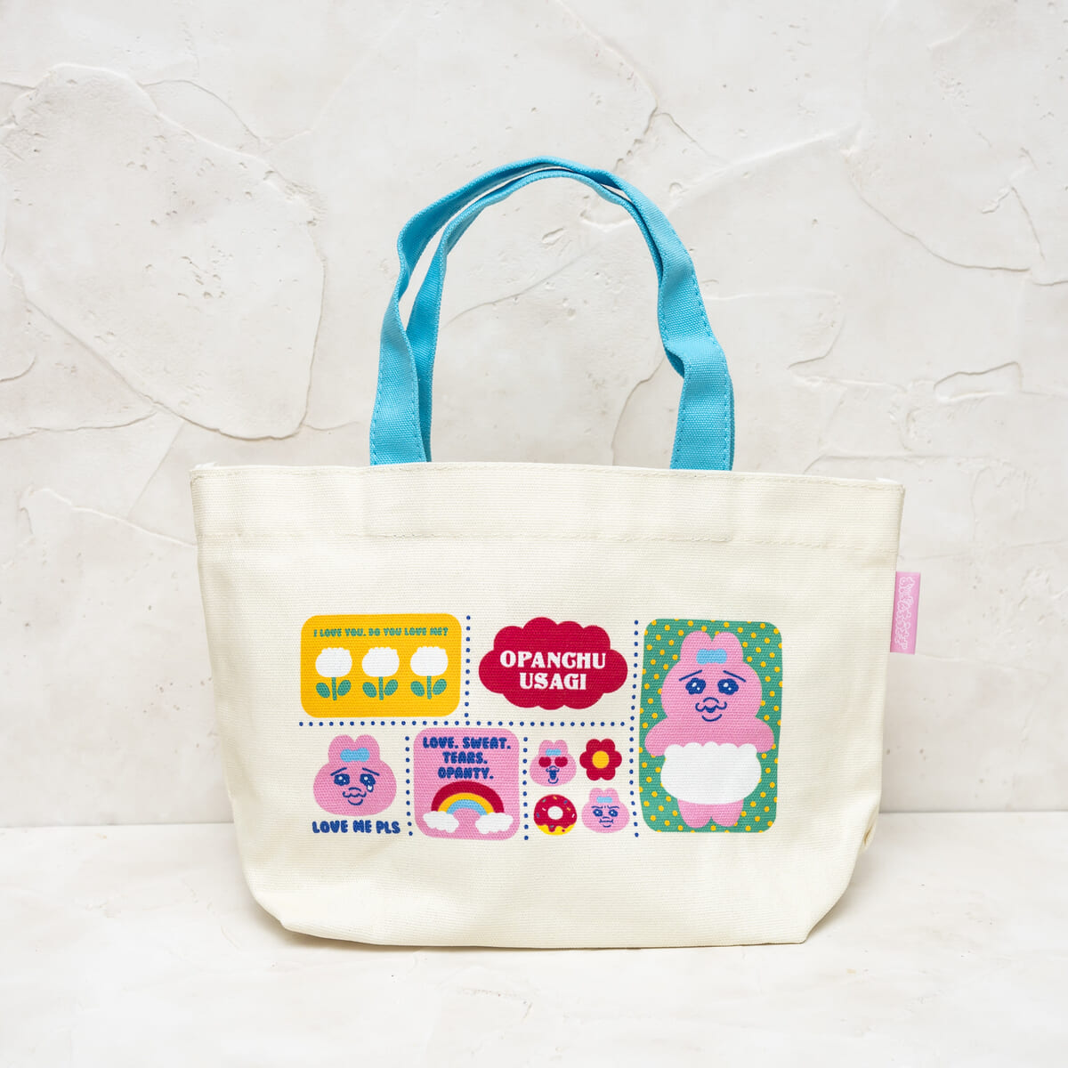 哀愁漂う「おぱんちゅうさぎ」の表情と、明るくポップなグラフィックのギャップが魅力です。