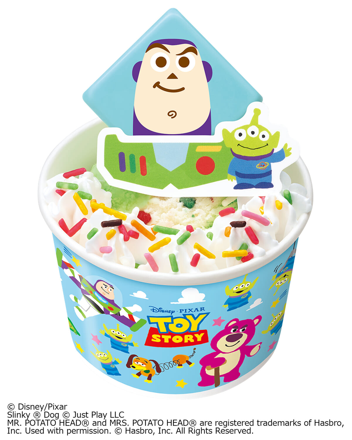 サーティワンにて期間限定で販売されている、ディズニー&ピクサーデザインの「トイ・ストーリー/サンデー」シリーズ。