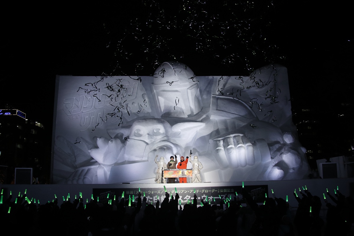 ウォルト・ディズニー・ジャパンは、第76回さっぽろ雪まつりにて映画『スター・ウォーズ/マンダロリアン・アンド・グローグー』の巨大雪像を公開しました。