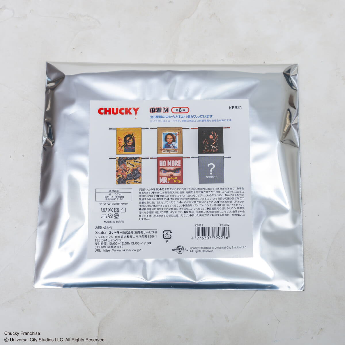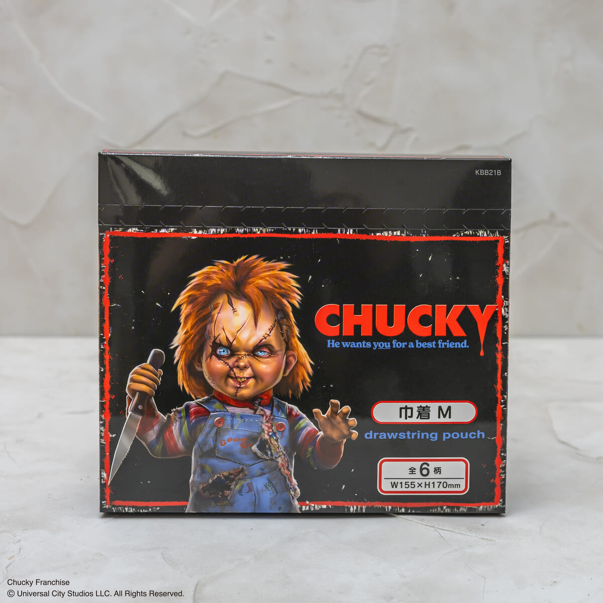 そのアイコンである「チャッキー」の、「Good Guys」人形としての愛らしさと、殺人鬼としての狂気という二面性を表現したデザイン巾着が登場しました。