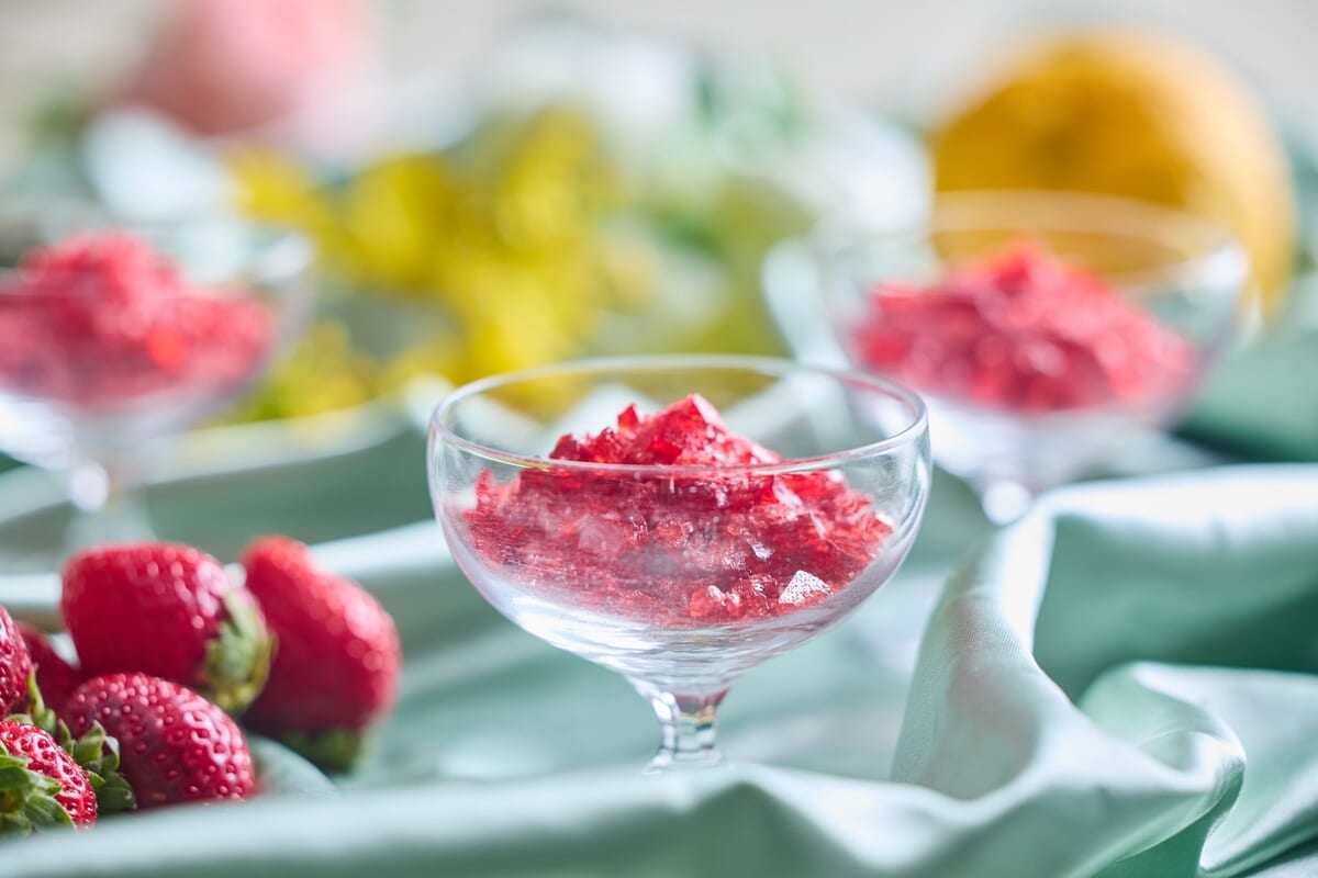 さっぱりと楽しみたい方には「柚子と苺のグラニテ」がおすすめ。