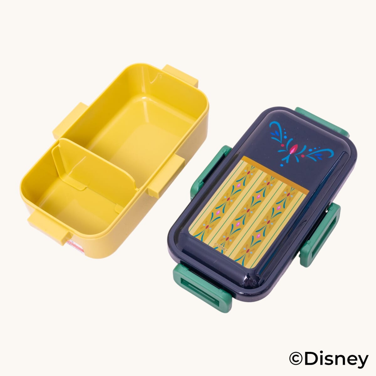 蓋は濃いブルー、本体は深みのあるイエロー、4点ロックはグリーンと、「アナ」のドレスのイメージそのままのカラーリング!
