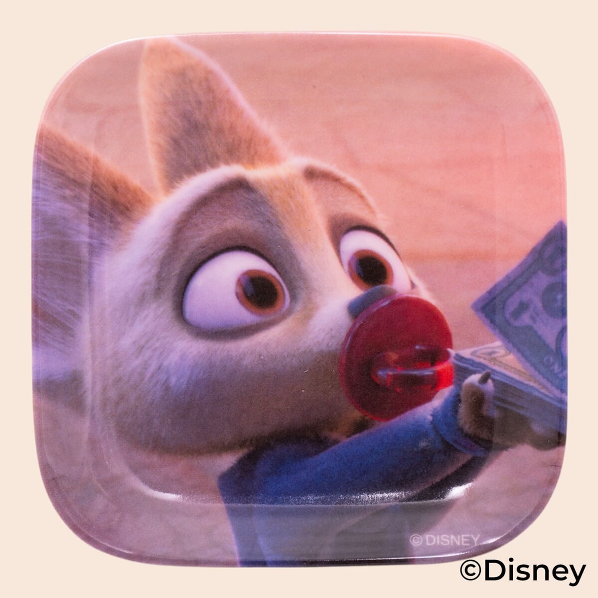 『ズートピア』の劇中シーンを切り取った「ファイナルフレーム」がデザインに採用された、軽くて割れにくいメラミン樹脂製のミニプレート。