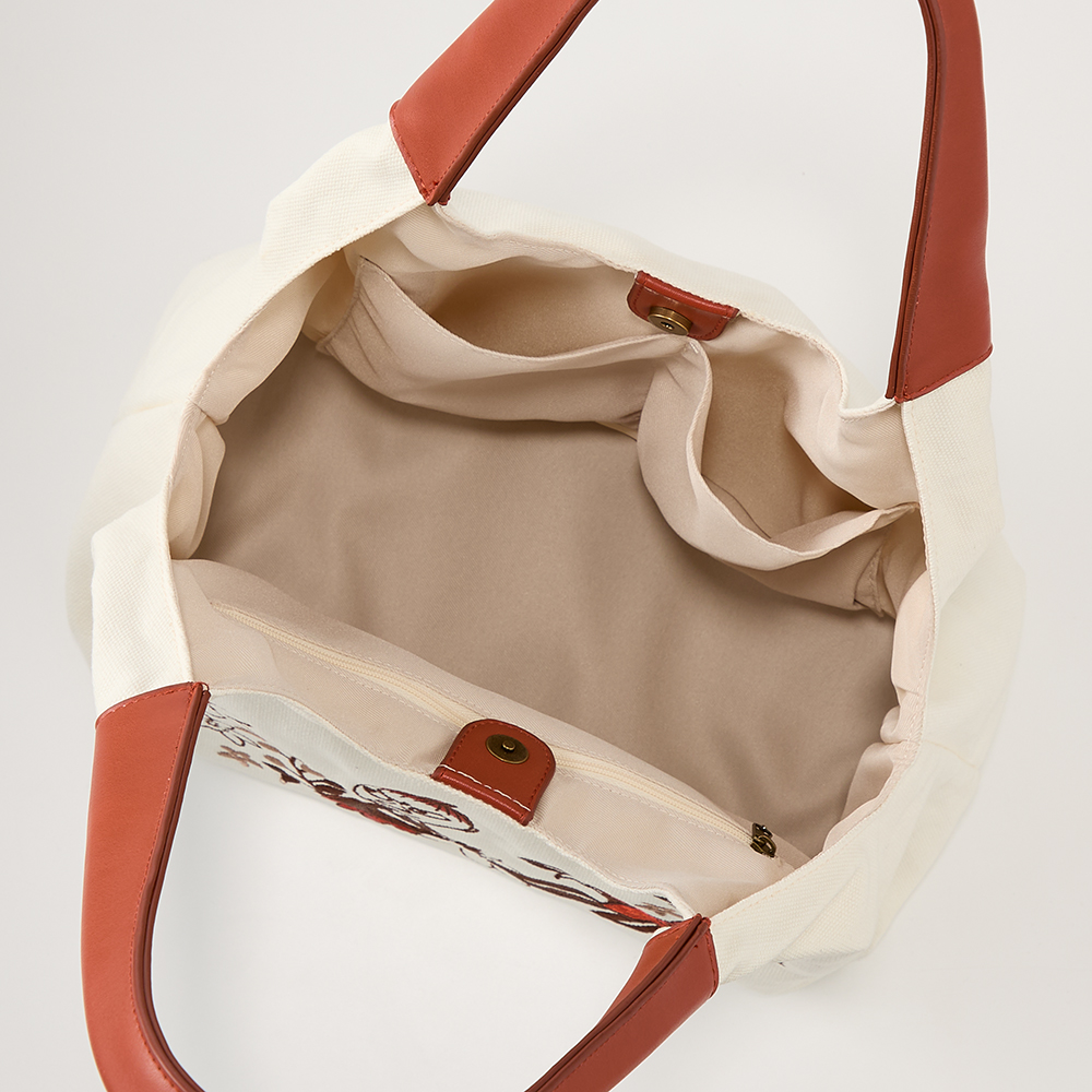コロンとしたバルーン型のシルエットがかわいらしい「リトルミイ」の刺繍があしらわれたトートバッグ。