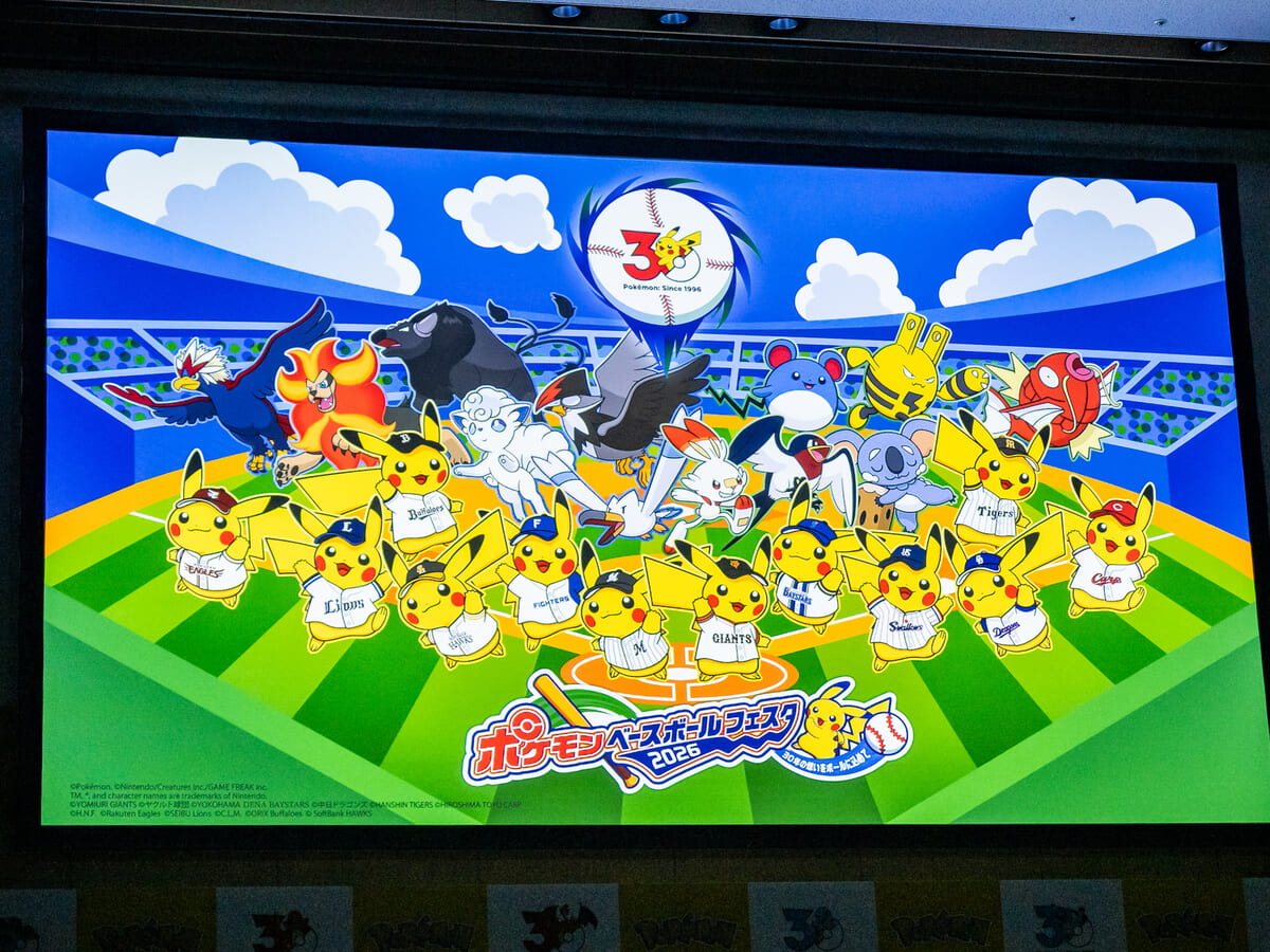 12球団のユニフォームをまとったピカチュウたちが大集合するフォトセッションも行われ、会場は笑顔に包まれました。