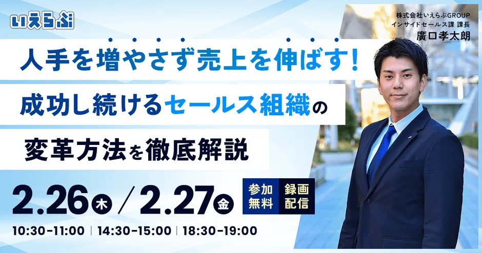 人手不足が続く売買仲介で、人数を増やさず成果を伸ばす組織設計を学べるオンラインセミナーが実施されます。