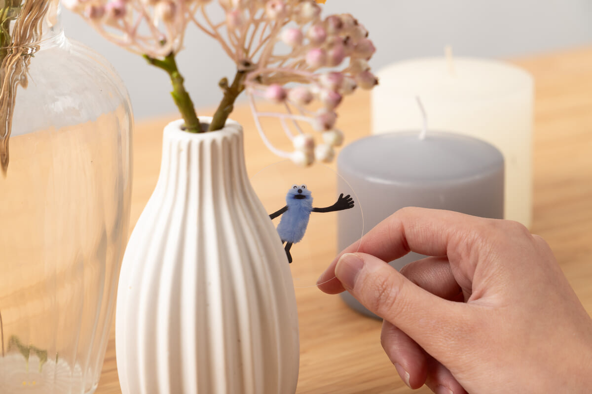 背景が透明になっているため、「スンスン」たちをさまざまな場所に登場させて遊ぶこともできるコラボ限定クリアピックです。