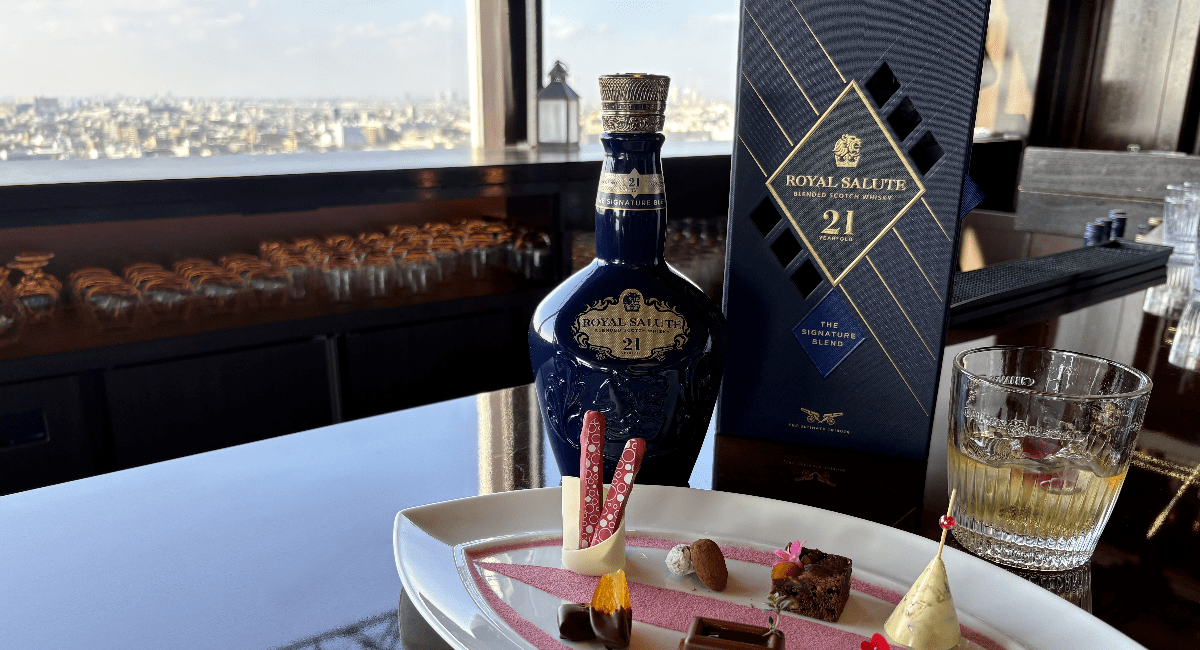 ウェルカムドリンクとしてオリジナルカクテル「Royal Fashioned」が提供され、それぞれのウイスキーに合わせたペアリング料理やデザートなど、細部にまでこだわった贅沢な120分間を堪能。