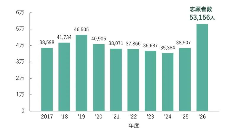• 2026年度一般選抜志願者数:53,156人