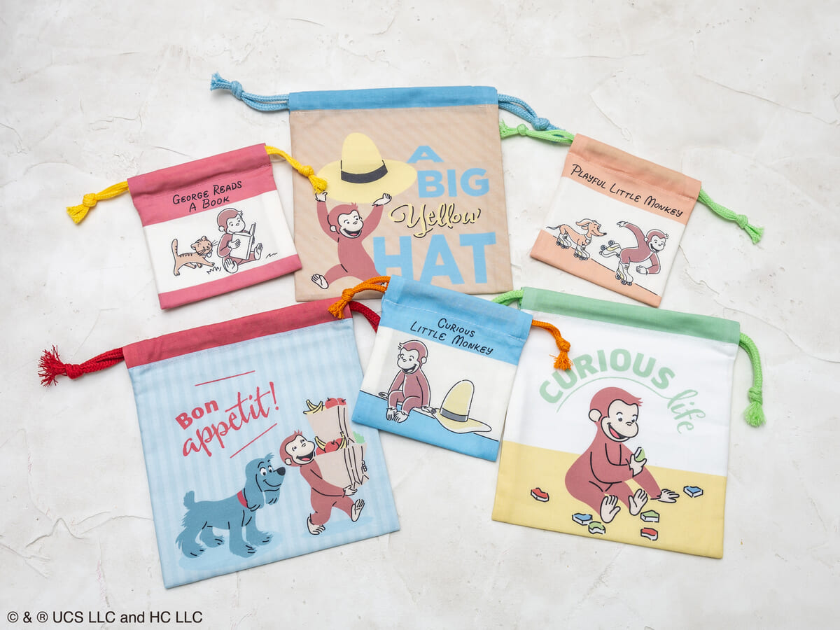 レトロで愛らしい「ジョージ」のデザインを使用した、シークレット柄も入った全6種の巾着。