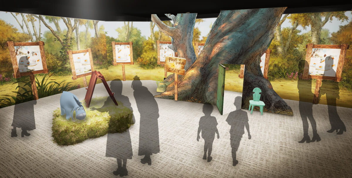 そして、ディズニー・アニメーション の展示では、100エーカーの森をテーマに「くまのプーさん」と仲間たちの暮らしを立体的に感じられる空間を演出。