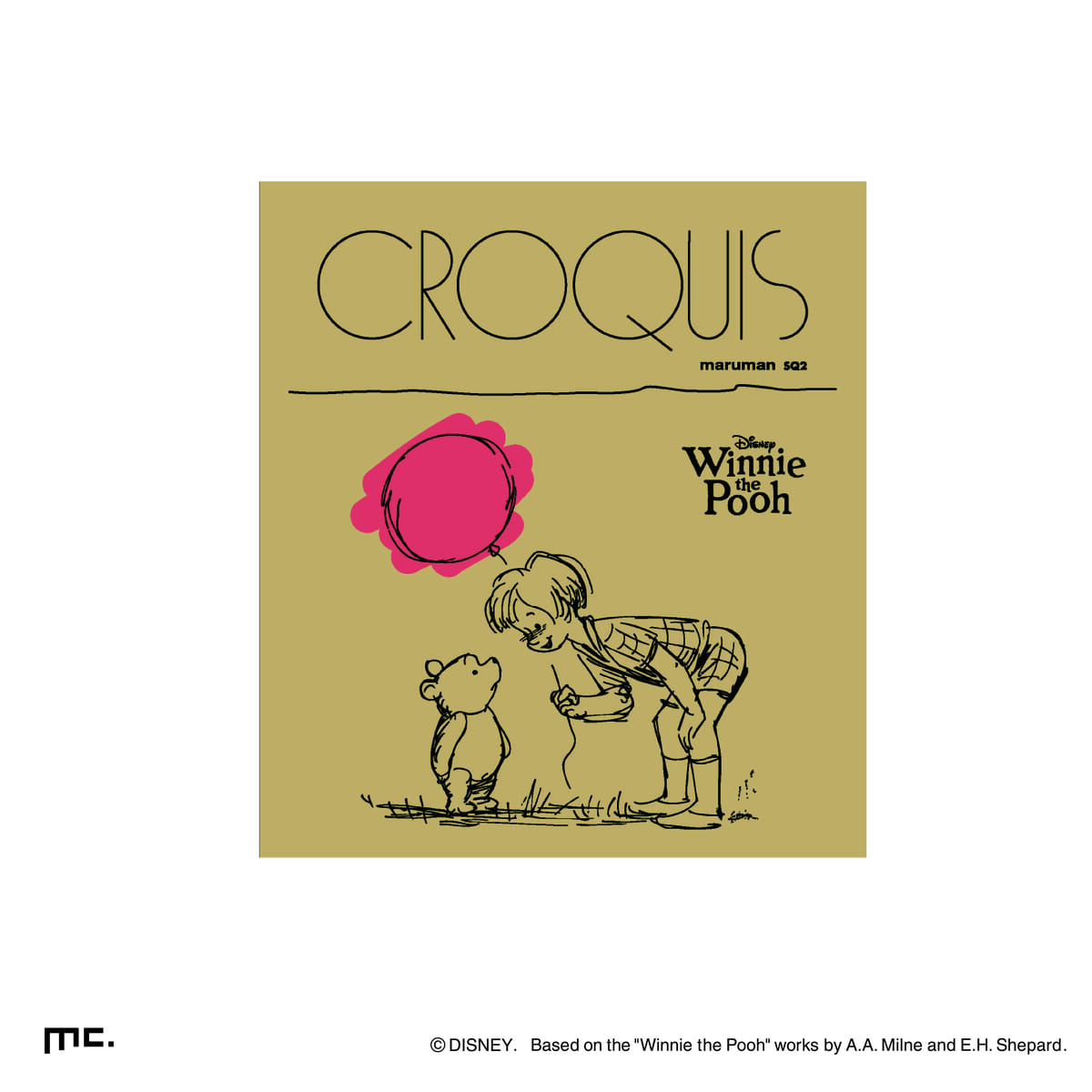 「くまのプーさん」と「クリストファー・ロビン」のクラシカルなアートが使用されたクロッキーブック。