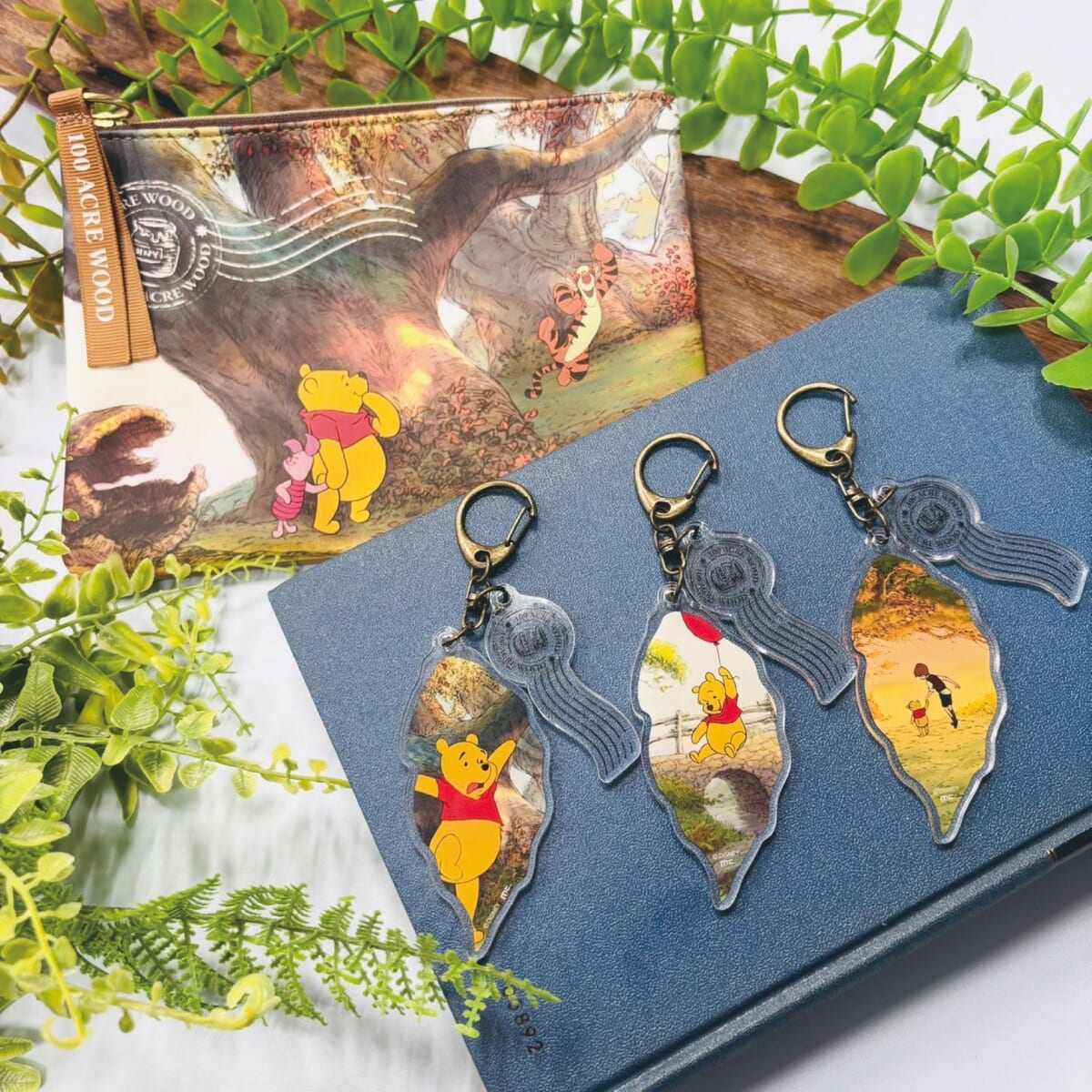 ディズニー・アニメーション『くまのプーさん』のワンシーンを使用したポーチとアクリルキーホルダー。