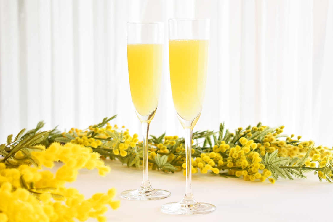 黄色いミモザの花が咲き誇る様子にちなみ、名付けられたミモザカクテルはオレンジジュースとスパークリングワインを1:1の割合で割った爽やかなカクテルです!