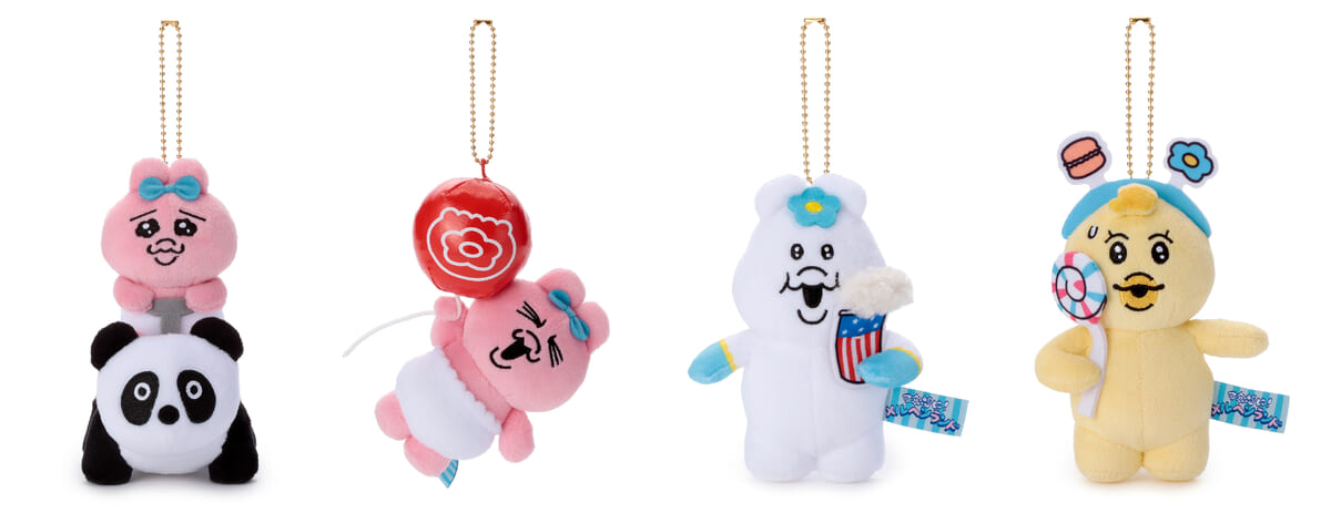 手に風船を持つ姿やパンダの乗り物と一緒のシーン、足長バージョンなどがラインナップされます。