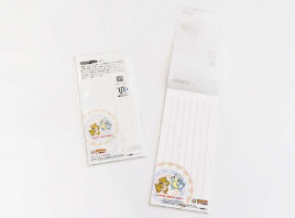 地元伝統工芸の因州和紙と鳥取東部に伝わる雨ごいの祭り”しゃんしゃん傘“のかわいらしい和傘と「とっとりふるさと大使」のサンドとアローラサンドをデザインした一筆箋。