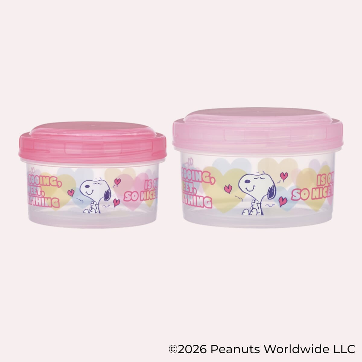 「スヌーピー」とハートのデザインがかわいらしく、カラーバリエーションは濃さの異なる2種類のピンクのセットと