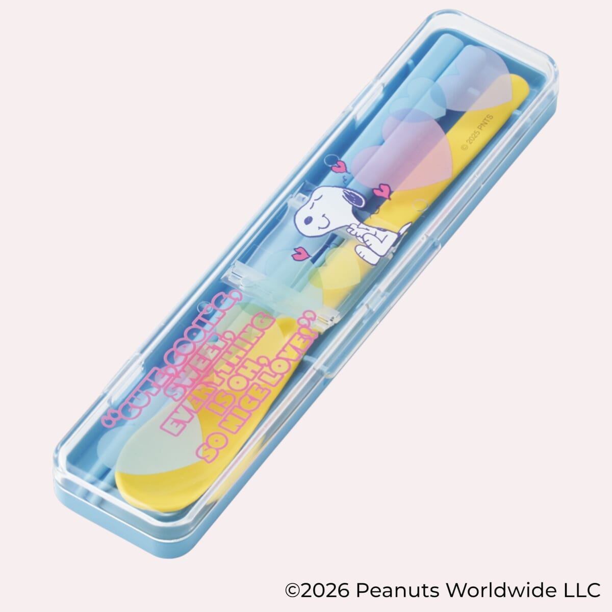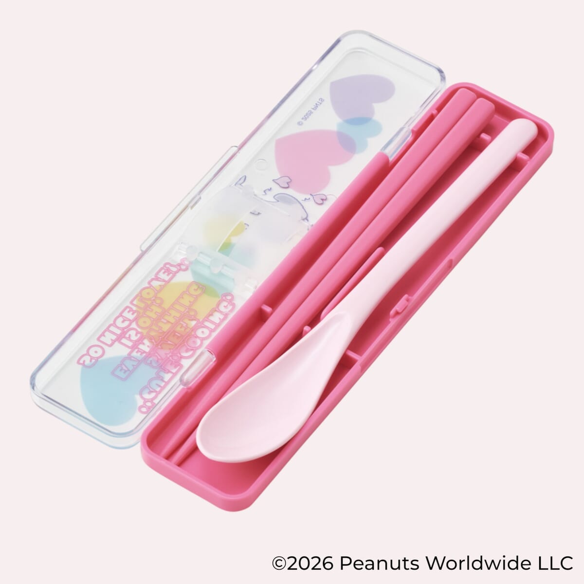 スケーターから、透明感とハートが彩る「スヌーピー」の新デザイン「クリアハート」シリーズのランチグッズが登場。