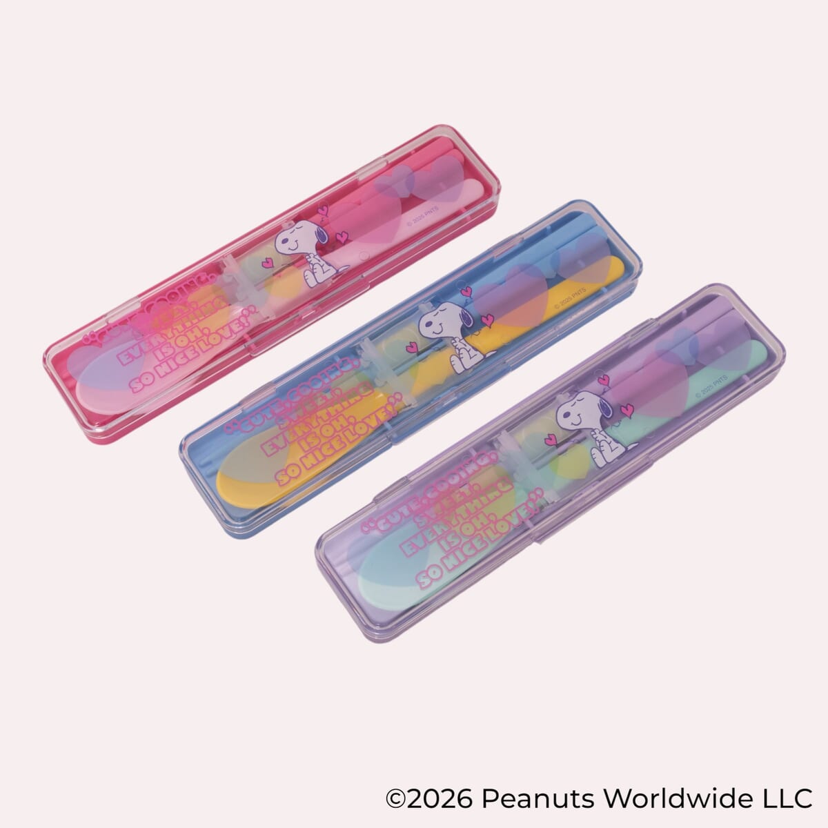 透明感のある素材に色鮮やかなハートと「スヌーピー」が描かれたランチグッズが、食卓やランチタイムを華やかに彩ります☆