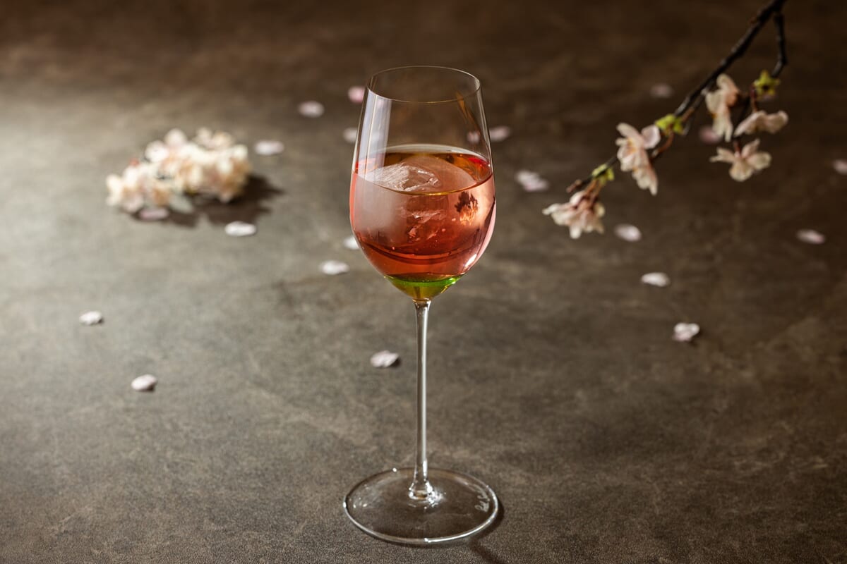 ローズヒップの淡い桜色とグリーンアップルの爽やかな香りが春の息吹を運ぶ、華やかなモクテルです。