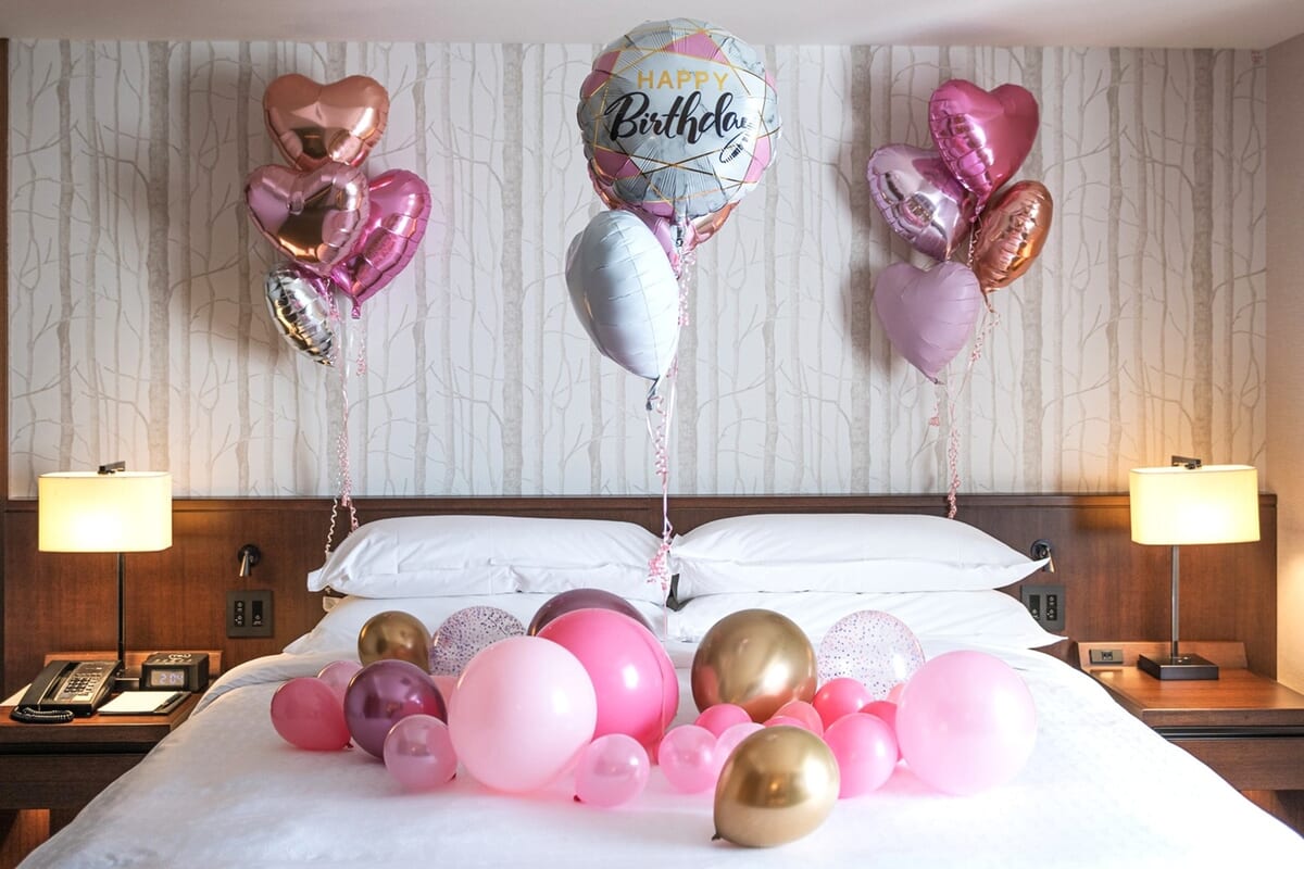 お部屋のドアを開けた瞬間に広がるのは、華やかなバルーンデコレーションの世界。