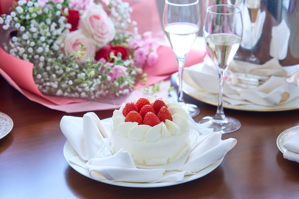さらに、サプライズで用意するホテル特製ホールケーキが豪華なお祝いシーンをより一層盛り上げ、部屋全体が祝福に包まれる贅沢なステイに!