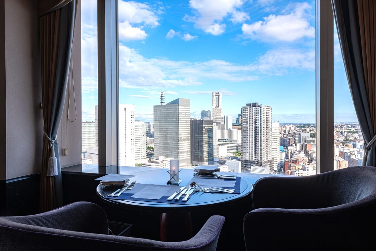 スカイラウンジ「ベイ・ビュー」にて、横浜の眺望とともに堪能できる、優雅な「ストロベリーアフタヌーンティーセット」も2026年5月31日まで延長。