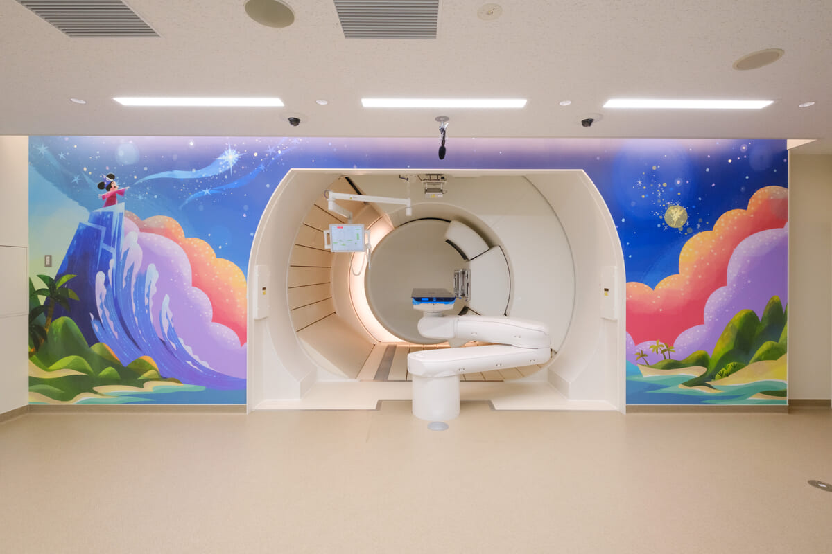 お子さんは壁紙の中からお気に入りのキャラクターを見つけ笑顔を見せたり、照射室に描かれた『ファンタジア』の“魔法使いの弟子ミッキーマウス”が勇気の魔法をかけるようなデザインを見て目を輝かせたり。